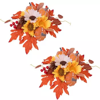 2Pcs Halloween Candle Rings with Sunflower, Pumpkin and Autumn Maple Leaves